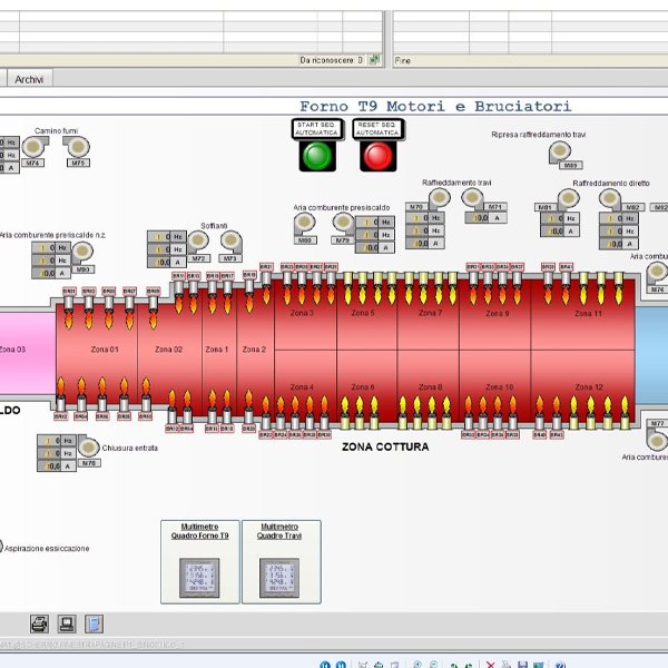 Progettazione e sviluppo sistemi di automazione, supervisione e controllo che hanno lo scopo di facilitare ed ottimizzare (tramite analisi dei dati) i meccanismi ed i flussi aziendali per conseguire il traguardo di una gestione estremamente funzionale. L’obiettivo è di immagazzinare le informazioni trasmesse dai vari dispositivi di campo, organizzati in base ai processi aziendali rispecchiando la struttura stessa dell’organizzazione in modo da gestire in maniera efficiente i processi controllati. Attraverso oftware per la gestione degli archivi dati, cioè di algoritmi che stabiliscono la connessione con i dispositivi di campo e riportano le informazioni su piattaforme per il monitoraggio in tempo reale principalmente delle aree di Produzione, Manutenzione, Energia, Infrastrutture.